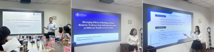 北交大学樊瑞鑫汇报了《Diverging Effects of Herding on Stock Returns: Evidence from Individual Investors at Different Wealth Levels in China》,揭示了不同财富水平投资者的羊群行为对股价的分化效应。