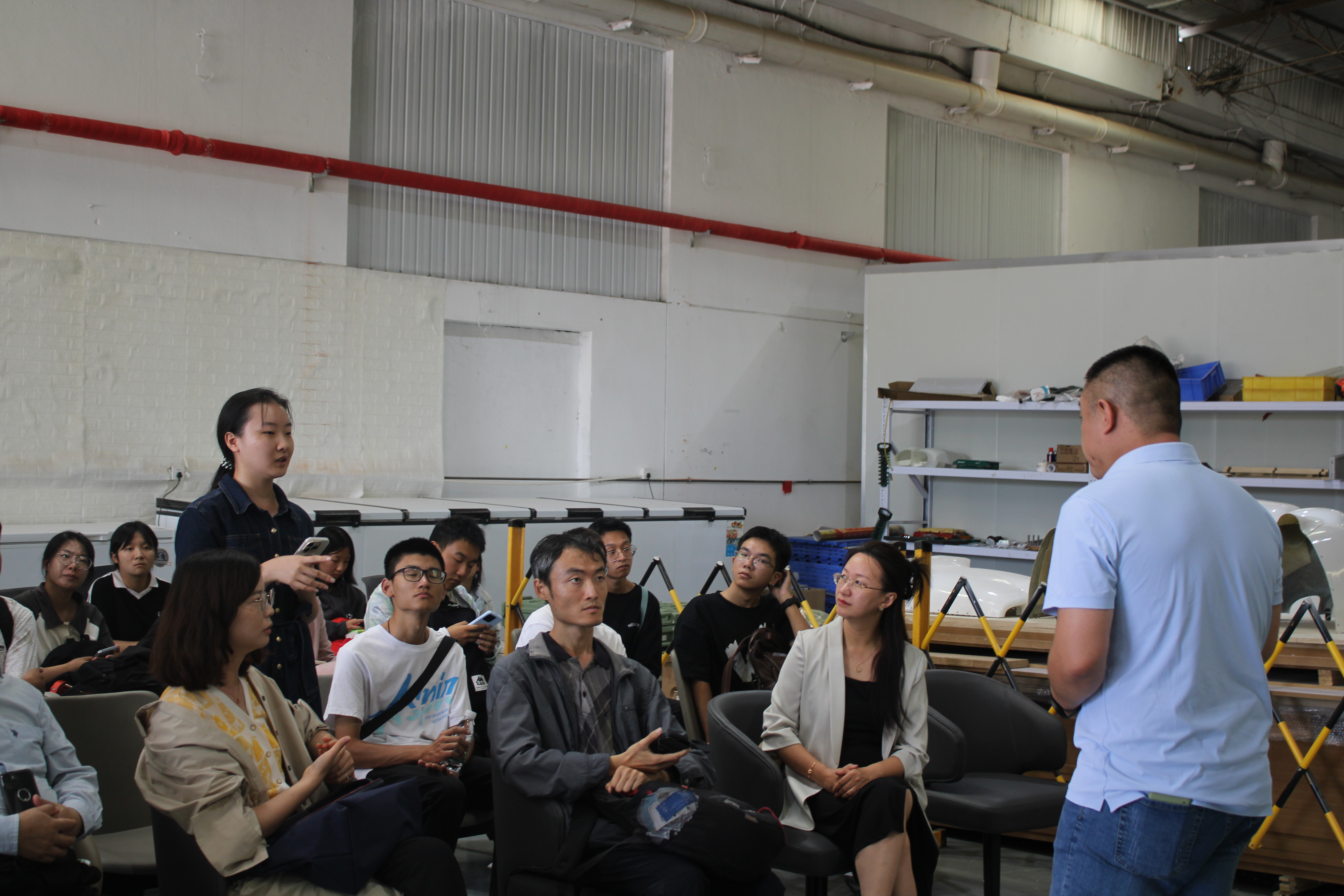 下午,淳一航空创始人、董事长孙伟向北理工师生介绍了公司的生产研发线与产品成果。公司分工明确,设计、制作、组装、喷漆,一体化建设。同时,孙伟进一步介绍了手抛式、垂直起降式、滑轨式无人机,并自豪地讲起淳一公司所产无人机在去年国内山洪灾害中应急运输物资的优秀表现,以及国际对中国无人机的高度认可。
