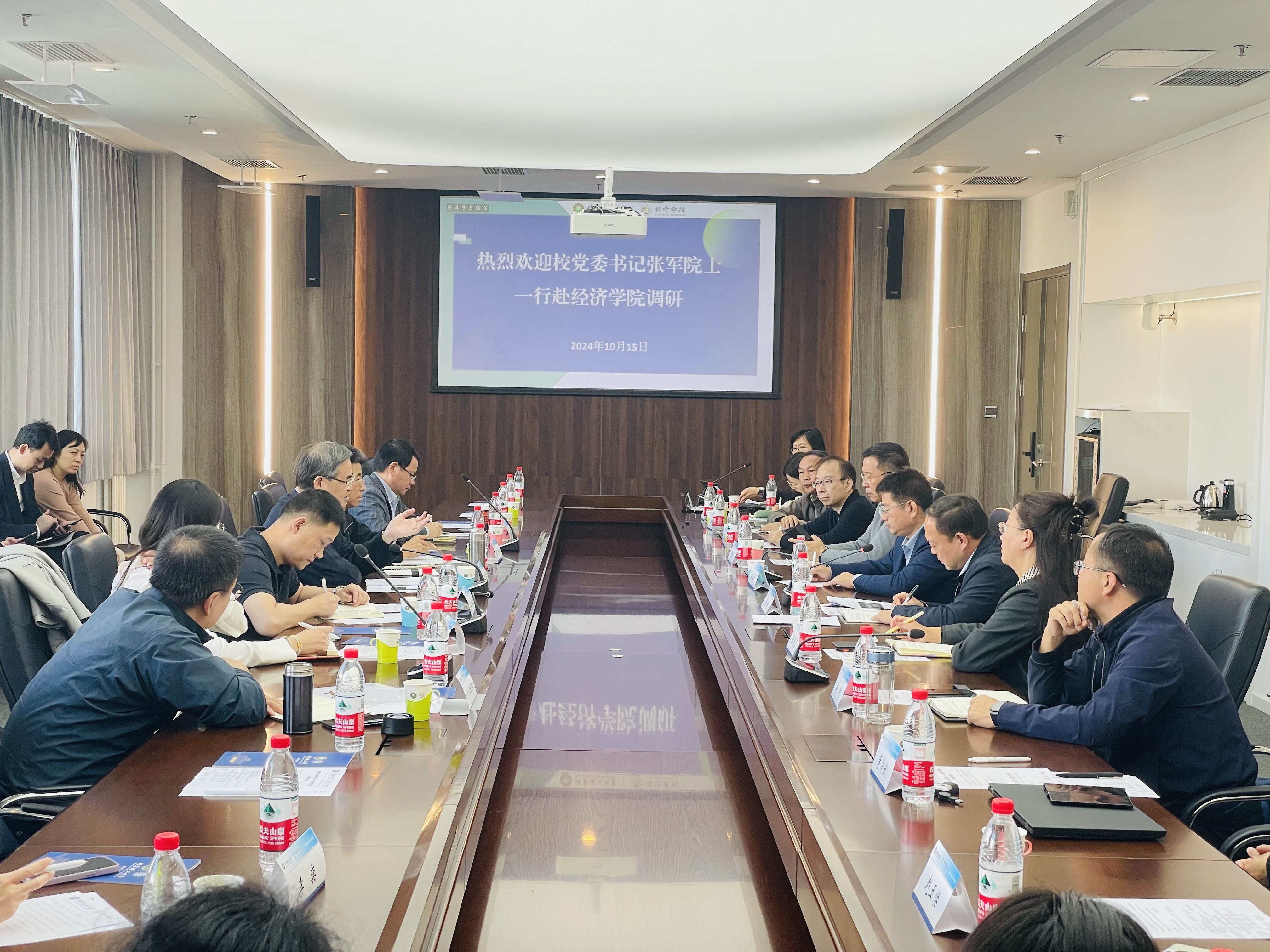 最后,张军书记在讲话中指出,一是学院克服困难,在人才培养和科技创新方面取得了一些成绩实属不易;二是希望学院以科学制订“十五五”发展规划为契机,积极谋划,勇于创新,以A类学科建设为目标,努力推进学院快速发展;三是建议学院开辟“新质”方向,以“新质”发展汇聚人才队伍,以“新质”方向落实国家重大战略;四是建议职能部门和学院协同创新,建议各职能部门在新学院初创期给予大力的支持,共同推进经济学院走出一条跨越式发展道路,支撑学校的“双一流”建设。